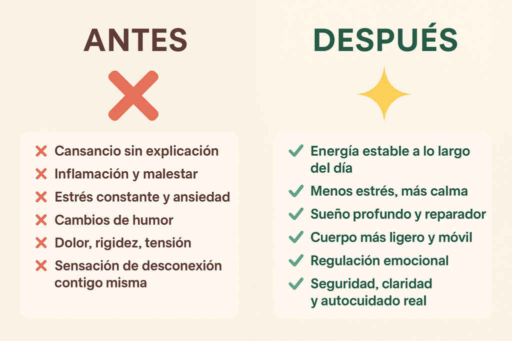 Cuando entiendes tus hormonas y empiezas a trabajar codo a codo con ellas, los síntomas se suavizan, tu energía se estabiliza y el equilibrio vuelve a sentirse posible.